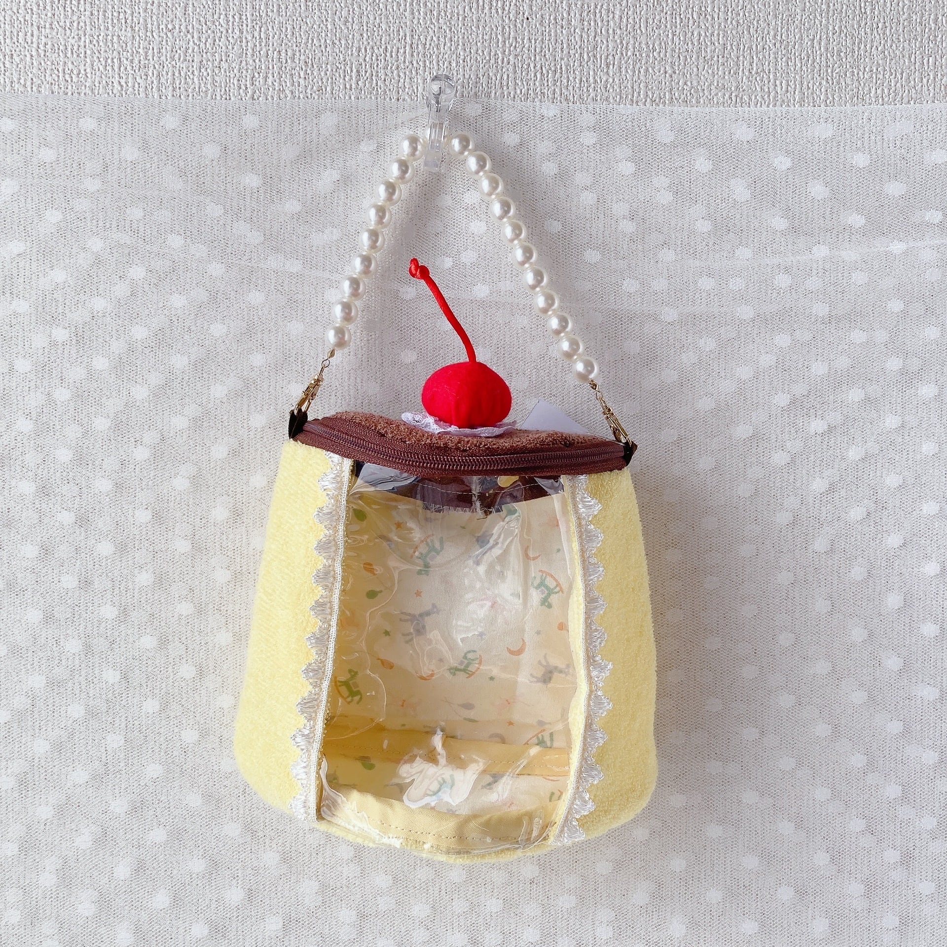 プリンモチーフのぬいポーチです。こちらは大きいサイズになります。