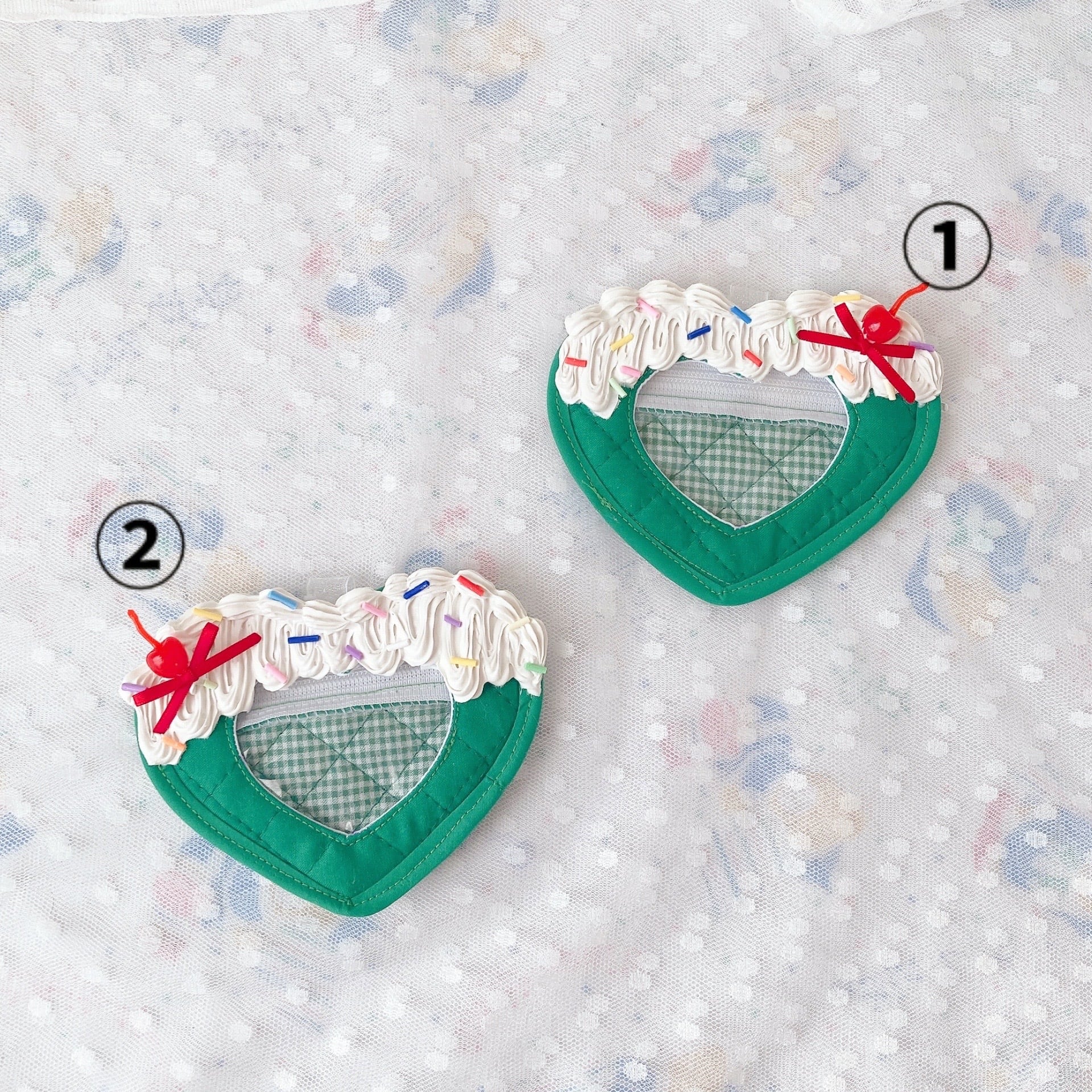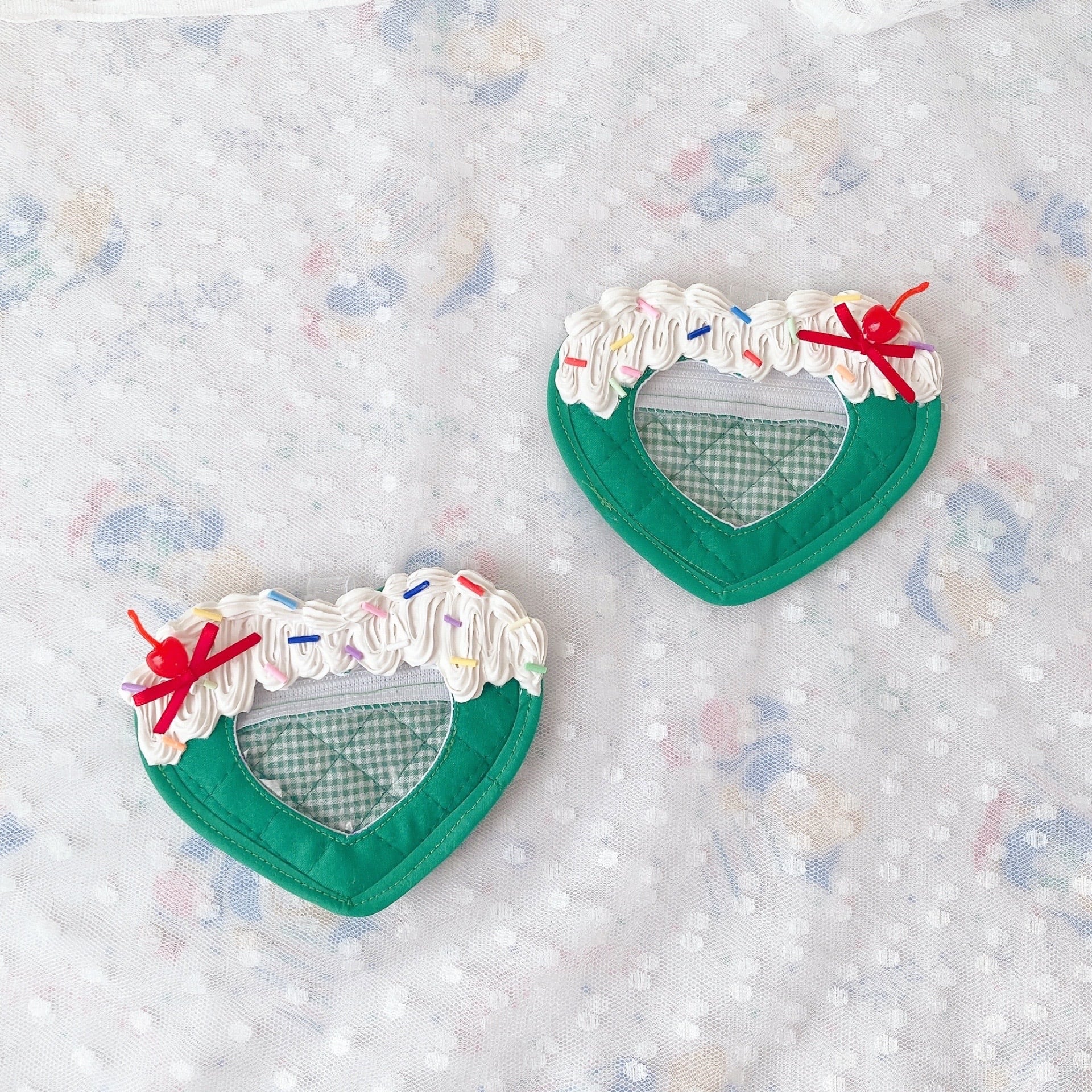 ハート型のクリームソーダがモチーフになってるビニールの窓付きケースです